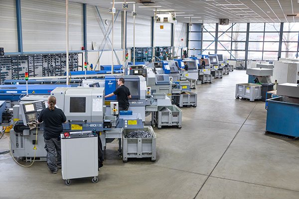 – de Zwitserse CNC draaibank: draait onderdelen met hoge precisie met tot wel 14 bewegende assen. Kan een serie van 1 miljoen eenheden produceren. De diameter varieert van Ø 1 – 32 mm en 1500 mm in lengte.