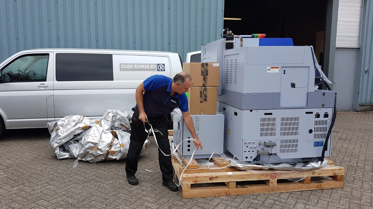 De levertijden voor machines zijn het afgelopen jaar flink opgelopen. Deze machine hadden wij in februari tijdens de Metav in Düsseldorf besteld en kon begin oktober geleverd worden. Helaas is tijdens het transport het magazijn zwaar beschadigd geraakt, waardoor wij de machine pas acht weken later met een nieuw magazijn in gebruik konden nemen. Dankzij de firma Oude Reimer is alles nu weer tip top in orde.