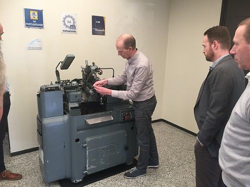 Op de foto: Ronald van Uffelen demonstreert de kwaliteit van een antieke Zwitserse draaibank.